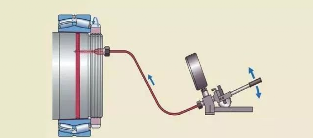 注油法 注油法的工作原理是:液壓油在高壓下通過(guò)油孔和油槽,注入軸承和軸徑之間的配合面,形成一層油膜。油膜將配合面分開(kāi),使得配合面之間的摩擦大幅減少。這種方法通常用于直接把軸承安裝在圓錐形軸徑上的情況。必須的油孔和油槽應(yīng)是整體軸設(shè)計(jì)的一部分。如果緊定套和退卸套,已加工有油孔油槽,這種方法也可用于將軸承安裝在緊定套或退卸套上。