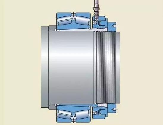 中小型軸承可以利用軸承安裝工具或最好用鎖緊螺母把內(nèi)圈推進(jìn)到圓錐形軸徑上的適當(dāng)位置。在使用緊定套的情況下,使用可以用鉤形扳手或沖擊扳手鎖緊的套筒螺母。對(duì)退卸套可用軸承安裝工具或端板將其推入軸承內(nèi)孔。